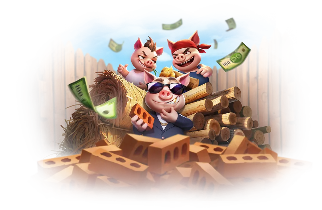 Three Crazy Piggiesมีตำนานเล่าขานถึงหมาป่าสีเทาที่ดุร้ายและเจ้าเล่ห์ซึ่งคอยล่าสัตว์ที่อ่อนแอเป็นอาหาร เพื่อหลีกเลี่ยงการตกเป็นเหยื่อของหมาป่า สามพี่น้องลูกหมูจึงตัดสินใจสร้างบ้าน พี่คนโตใจร้อนรีบสร้างบ้านฟางขึ้นมา พี่คนรองที่รอบคอบใช้ไม้เก่ามาสร้างบ้านไม้ ส่วนน้องคนเล็กที่สุขุมรอบคอบสร้างบ้านหินที่แข็งแรงด้วยหินจากก้นแม่น้ำและโคลน